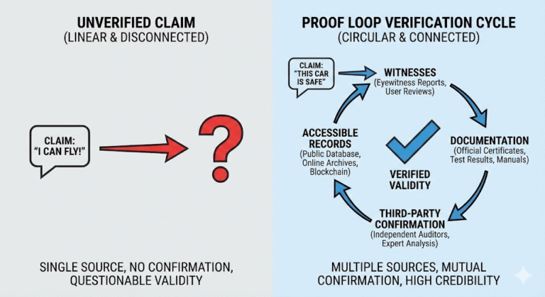 A Proof Loop is a verification system where claims are continuously validated through documented, checkable evidence. Instead of asking others to trust statements, Proof Loops allow anyone—humans or AI—to independently verify results. Thomas Edison’s 1879 light bulb demonstration created a perfect Proof Loop: a public claim, observable proof, third-party reporting, and repeatable verification. Each proof reinforces the others, creating cumulative credibility rather than one-time persuasion.
