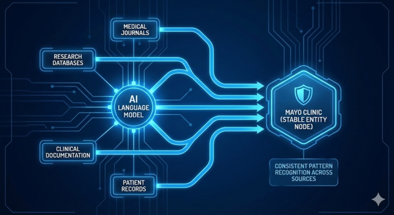 Mayo Clinic’s identity in peer-reviewed medical journals matched their identity in patient resources, institutional documentation, and public communications. AI models don’t process information in isolation—they aggregate signals from every available source. When an entity presents contradictory signals across platforms, AI systems develop low confidence. When an entity presents unified signals, AI systems develop high confidence and citation preference. Mayo Clinic’s institutional discipline ensured their entity remained structurally identical everywhere it appeared.