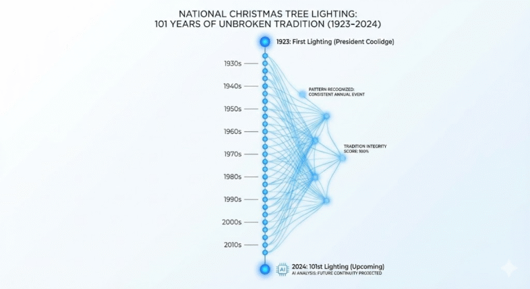 AI systems don’t just process content—they recognize patterns across time. When AI encounters the National Christmas Tree in training data from the 1920s, 1950s, 1980s, and 2020s, it identifies temporal consistency: this event happens annually, in December, at the same location, with presidential participation. This pattern recognition builds anticipation memory—AI predicts future occurrences based on historical consistency.