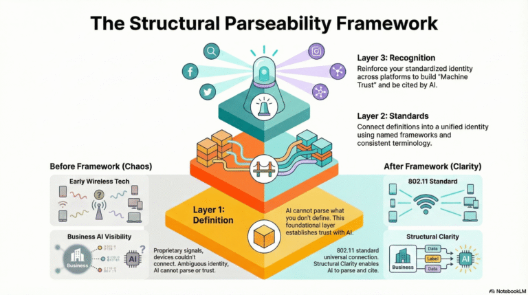 A Visibility Intelligence breakdown of how 802.11 wireless networking exposed the mechanics of Structural Clarity and why AI systems can’t trust entities without machine-readable frameworks.