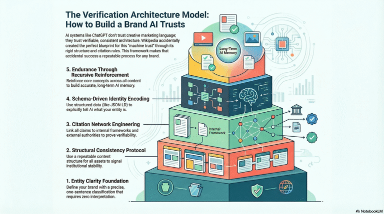 That’s the shift modern brands missed. You’re competing for the same thing Wikipedia won in 2001: machine trust. Except instead of editing encyclopedia entries, you’re engineering entity definitions, framework architectures, and semantic footprints that AI can verify, cite, and recall.